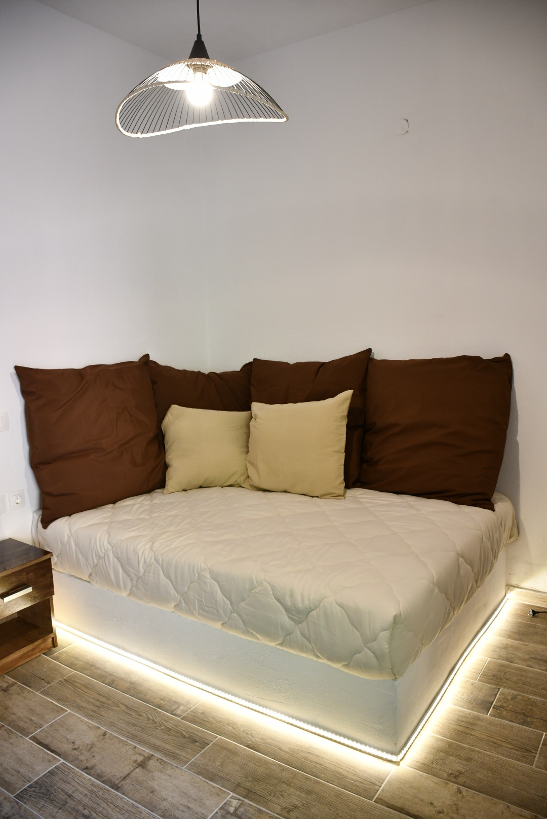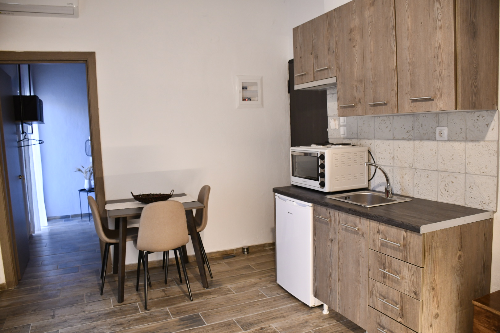 Elevated Living with a Homely Touch. The ‘2 Spaces – First Floor’ apartment offers a delightful blend of comfort and modern living, situated to provide a more elevated view. Ideal for families of four, this apartment features a spacious living room with a large sofa that doubles as an additional sleeping space for two. The separate bedroom, complete with a double bed, provides a peaceful and private sleeping area. The first-floor positioning allows for enhanced privacy and tranquility, away from the bustle of ground-level activities. Every detail in this apartment is thoughtfully arranged to create a welcoming, family-friendly environment, complete with all the necessary amenities for a stress-free stay.