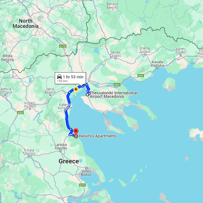 - From Makedonia Airport (Thessaloniki): The journey from Makedonia Airport to Stomio covers approximately 150 kilometers, offering a scenic route that takes you closer to the heart of Greek natural beauty.